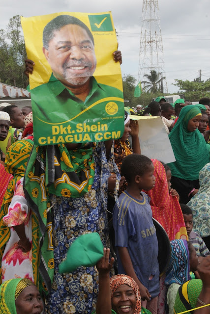 Mgombea Urais kupitia Chama cha Mapinduzi Dk Shein akiwana na Viongozi wakifuatilia mkutano huo wa kampeni uliofanyika katika viwanja vya mpira Konde kisiwani Pemba ikiwa ni mkutano wake wa tatu kisiwani Pemba akiwa katika kampeni zake.